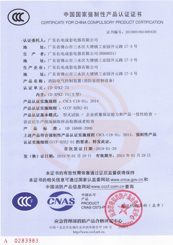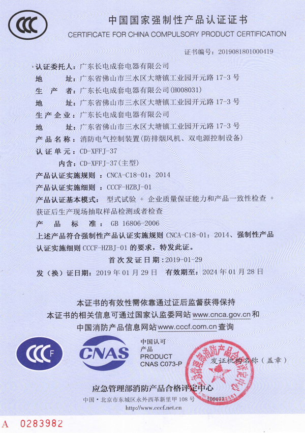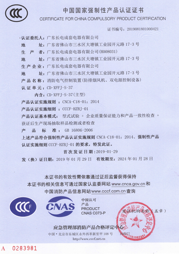 中國(guó)國(guó)家強(qiáng)制性產(chǎn)品認(rèn)證證書(shū)